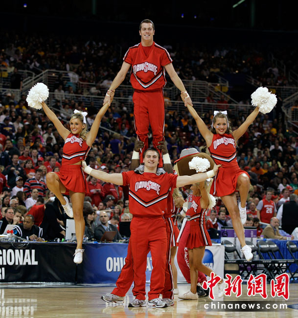 啦啦隊(duì)的歷史可追溯到原始部落時(shí)期,戰(zhàn)士們狩獵凱旋歸來(lái)時(shí),人們給予歡呼及鼓勵(lì)的動(dòng)作。最初的拉拉隊(duì)要追溯到19世紀(jì)80年代的美國(guó)大學(xué)校園,當(dāng)時(shí)的形式是在大學(xué)里的橄欖球賽上,一位領(lǐng)隊(duì)站在一大群人前面領(lǐng)導(dǎo)他們?yōu)樽约旱那蜿?duì)吶喊助威。圖片來(lái)源:中國(guó)新聞網(wǎng)