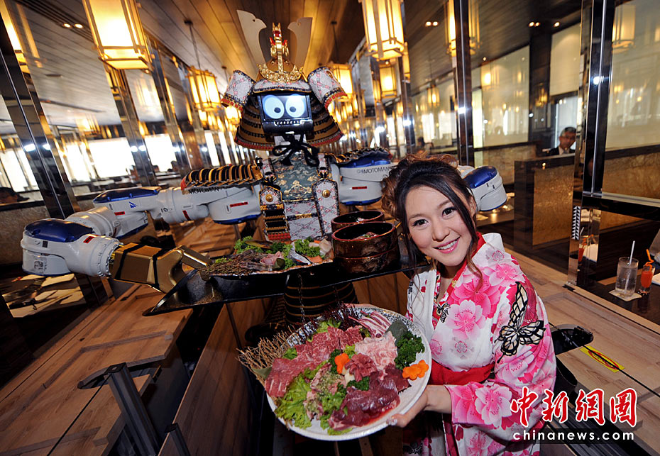 這家日本餐館是泰國首家擁有機(jī)器人服務(wù)員的餐館,顧客可以通過電子觸摸屏進(jìn)行點菜,機(jī)器人則會帶來相應(yīng)的服務(wù)。機(jī)器人服務(wù)員能有節(jié)奏地跳舞,還可以自動到餐桌為客人收走空盤子。