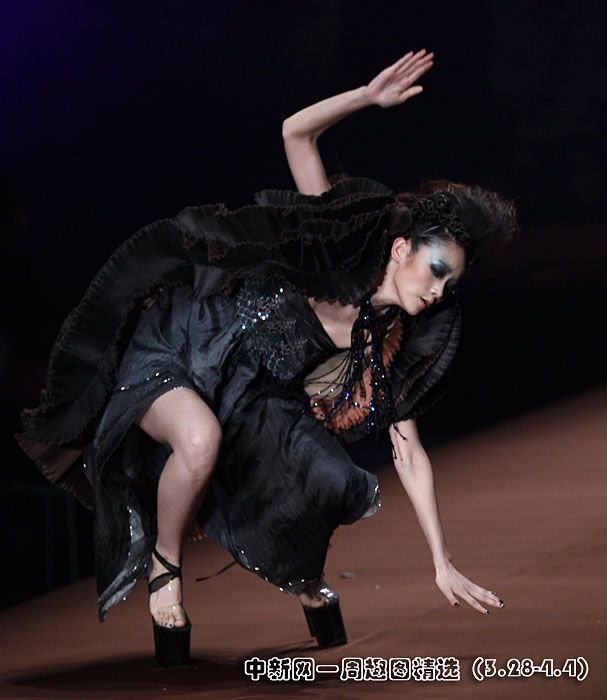 3月29日晚,旭化成·中國時(shí)裝設(shè)計(jì)師創(chuàng)意大獎(jiǎng)張義超作品發(fā)布會在北京舉行,一名模特在T型臺上“失足”摔倒。圖片來源:中國新聞網(wǎng)>>點(diǎn)擊觀看詳細(xì)內(nèi)容