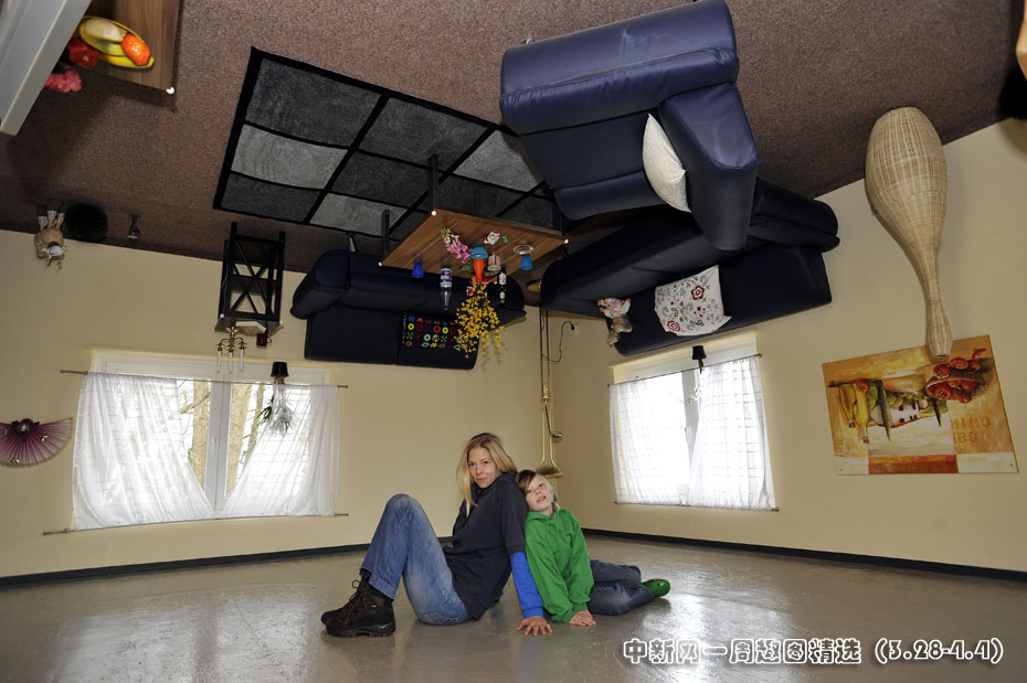 3月30日,德國(guó)蓋托夫市“瘋狂的房子”面向公眾開放。該房屋整個(gè)顛倒里面的家具也是被釘在屋頂上的。圖片來源:中國(guó)新聞網(wǎng)>>點(diǎn)擊觀看詳細(xì)內(nèi)容