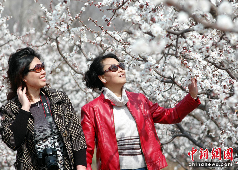4月3日,山東鄒平縣萬畝杏園內鮮花怒放,爭奇斗艷,正在進行的杏花節(jié)觀花活動吸引了當地及周邊成千上萬的攝影愛好者和游客紛紛前來拍照游玩,賞花踏青。中新社發(fā) 董乃德 攝