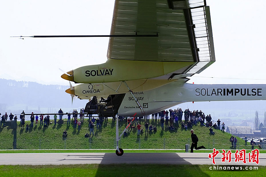 當(dāng)?shù)貢r間4月7日上午,全球首架依靠太陽能驅(qū)動的飛機(jī)進(jìn)行首次試飛,預(yù)計此種新型飛機(jī)將在2011年實(shí)現(xiàn)環(huán)球航行。圖片來源:中國新聞網(wǎng)