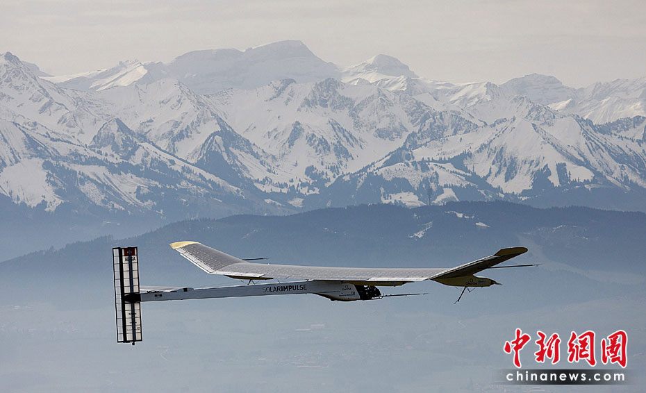 當(dāng)?shù)貢r(shí)間4月7日上午,全球首架依靠太陽能驅(qū)動(dòng)的飛機(jī)進(jìn)行首次試飛,預(yù)計(jì)此種新型飛機(jī)將在2011年實(shí)現(xiàn)環(huán)球航行。圖片來源:中國新聞網(wǎng)