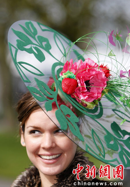 4月9日,英國安特里,女士們盛裝出席安特里賽馬場女士日活動。