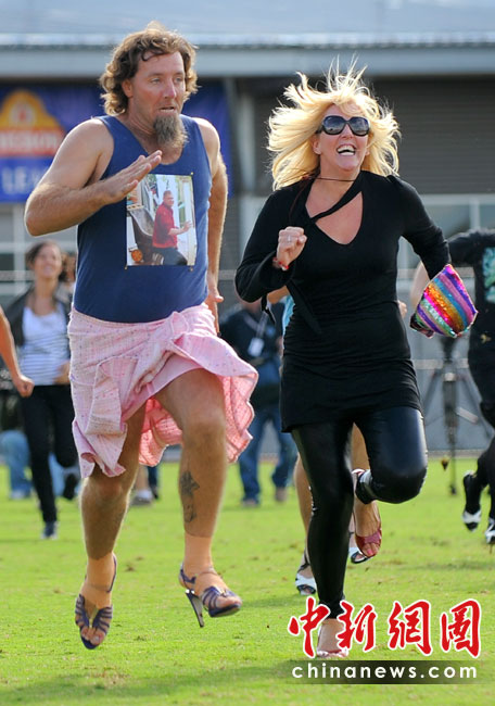 4月10日,在澳大利亞墨爾本,人們穿著高跟鞋賽跑。旨在挑戰(zhàn)多人穿高跟鞋賽跑的吉尼斯世界紀錄。盡管最終挑戰(zhàn)失敗,參賽者仍在80米的賽道上爭先恐后,各顯神通。