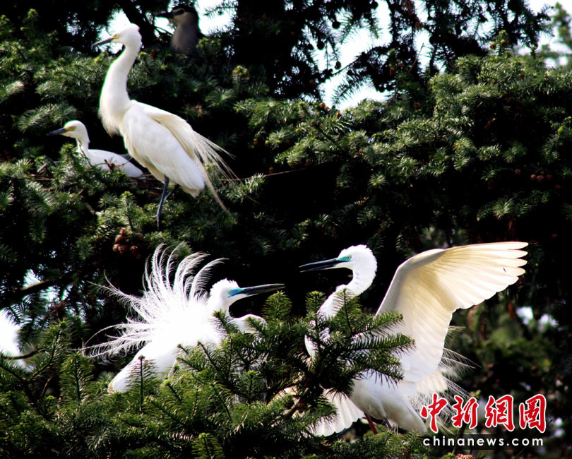4月9日,一對(duì)白鷺在象山森林公園歡躍飛舞,譜寫一曲春日戀歌。四月,正值芳草萋萋,萬物生機(jī)勃勃。萬余只白鷺陸續(xù)抵達(dá)江西南昌象山森林公園棲息,繁衍后代,成為鄱陽湖濕地的一大獨(dú)特景觀, 吸引眾多攝影愛好者前來拍攝和觀賞。孫永勝 胡國林 攝