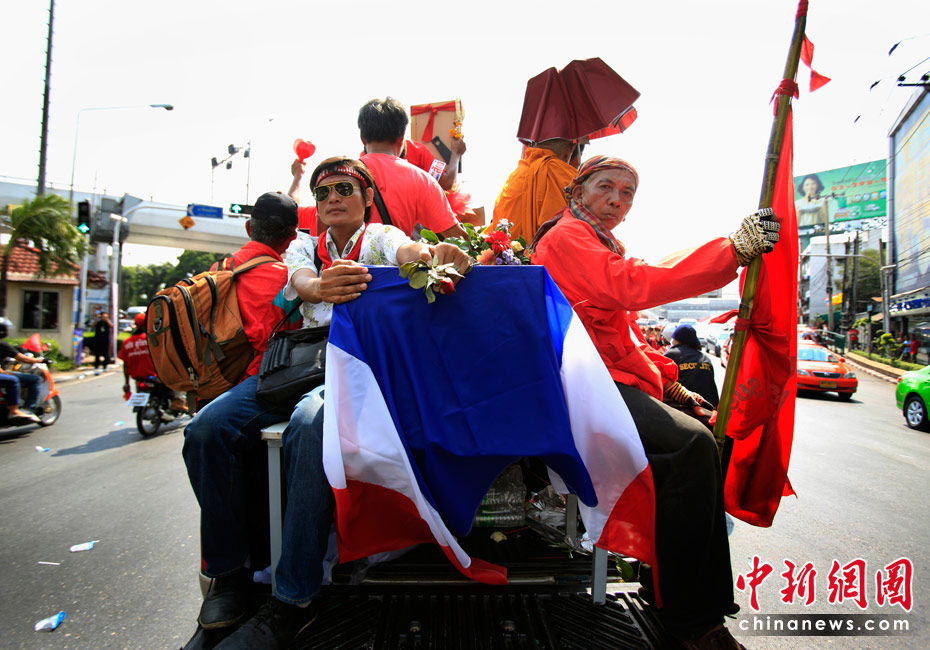 當(dāng)?shù)貢r(shí)間4月12日,泰國(guó)紅衫軍在曼谷市區(qū)抬著棺材舉行游行,借此向政府施壓促阿披實(shí)下臺(tái)。此前紅衫軍示威者與軍警發(fā)生沖突,造成21人死亡。圖片來(lái)源:中國(guó)新聞網(wǎng)