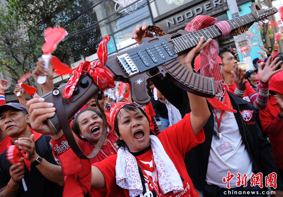 當(dāng)?shù)貢r(shí)間4月12日,泰國(guó)紅衫軍在曼谷市區(qū)抬著棺材舉行游行,借此向政府施壓促阿披實(shí)下臺(tái)。此前紅衫軍示威者與軍警發(fā)生沖突,造成21人死亡。圖片來(lái)源:中國(guó)新聞網(wǎng)