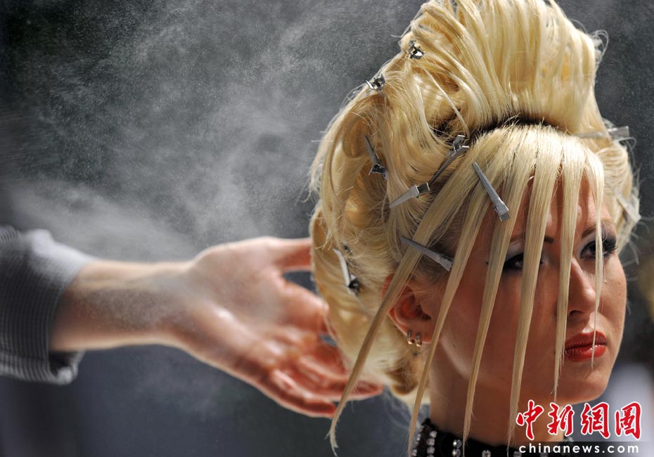 近日,第九屆“水晶天使”國際發(fā)型藝術(shù)節(jié)開幕,設(shè)計師紛紛秀出自己設(shè)計的新款發(fā)型。圖片來源:中國新聞網(wǎng)