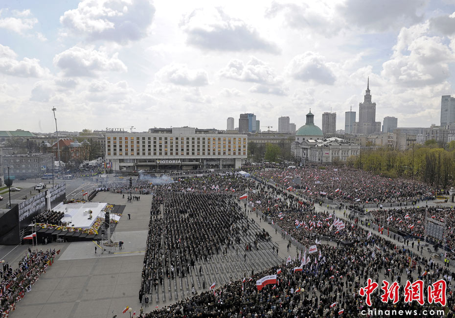 波蘭4月17日為總統(tǒng)專機墜機事件中96名遇難者舉行大規(guī)模的官方悼念儀式。