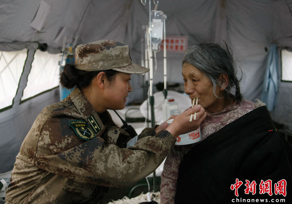 總后青藏兵站部抗震救災(zāi)醫(yī)療隊(duì)目前在玉樹災(zāi)區(qū)開展救治工作,已收治重癥傷病員48名,實(shí)施手術(shù)9例。醫(yī)療隊(duì)到達(dá)玉樹結(jié)古鎮(zhèn)后,迅速設(shè)立野戰(zhàn)醫(yī)院,展開救治工作。在得知西同路附近還有大批傷員急需救治后,又迅速派出救護(hù)車進(jìn)行就診。圖為醫(yī)療人員精心護(hù)理傷員。中新社發(fā) 鄒小慶 攝