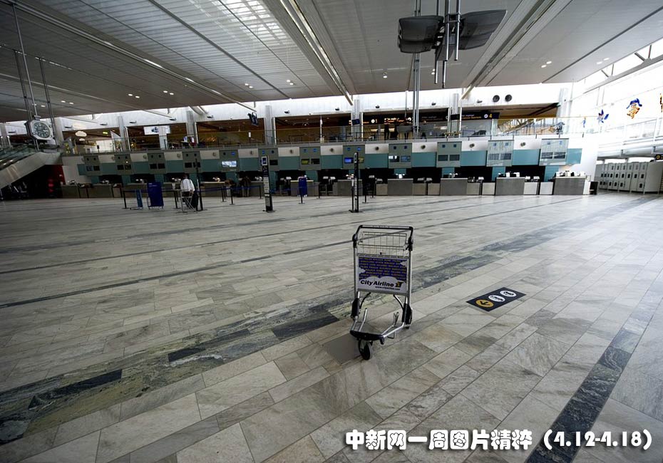 瑞典一機(jī)場(chǎng)大廳辦理登機(jī)手續(xù)的窗口前空無一人,此前冰島火山噴發(fā)產(chǎn)生的火山灰導(dǎo)致歐洲多個(gè)機(jī)場(chǎng)被迫關(guān)閉。