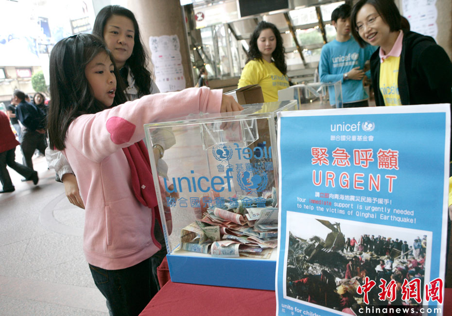 4月18日,香港市民在時代廣場募捐。4月14日,青海省玉樹藏族自治州玉樹縣發(fā)生7.1級地震,給當?shù)厝嗣袢罕娚敭a(chǎn)造成嚴重損失。災(zāi)情牽動廣大香港同胞災(zāi)情牽動廣大香港同胞的心,連日來,香港社會各界團體及市民紛紛為地震災(zāi)區(qū)捐款。中新社發(fā) 張勤 攝