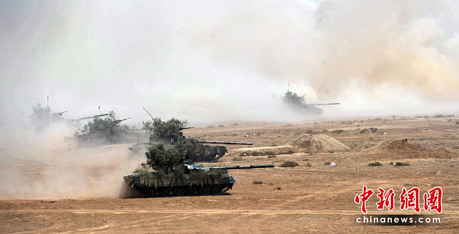 巴基斯坦軍隊4月18日出動戰(zhàn)機、坦克和重型火炮,在靠近印度邊界的東部沙漠地區(qū)舉行“新決心—3”軍事演習。圖片來源:中國新聞網(wǎng)