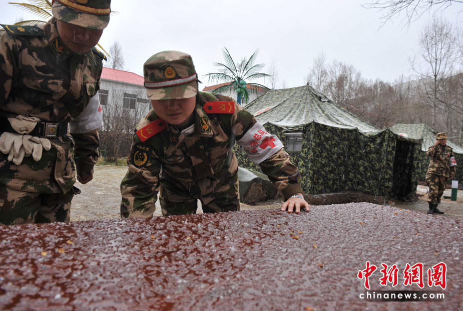 4月20日12時(shí)許,玉樹(shù)地震災(zāi)區(qū)突然雷雹交加,給青海武警總隊(duì)醫(yī)療救護(hù)隊(duì)治療抗震救災(zāi)傷員造成困難。中新社發(fā) 賈國(guó)榮 攝