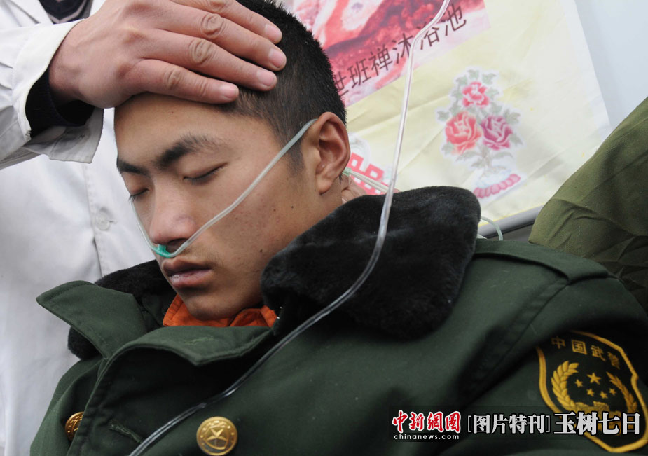 4月18日清晨,玉樹昨夜寒風冰雹使地震災區(qū)雪上加霜。部分救援人員出現(xiàn)嚴重高原反應。中新社發(fā) 賈國榮 攝