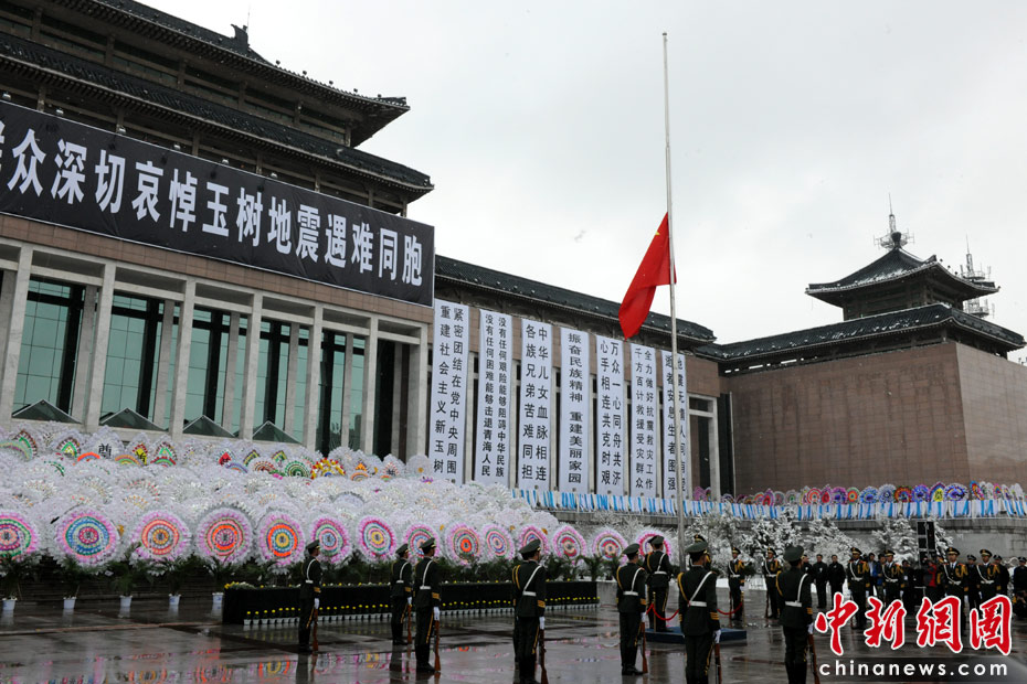 21日上午9時(shí)許,西寧各界民眾冒雪陸續(xù)來到該市最大的廣場(chǎng)——新寧廣場(chǎng),悼念玉樹地震遇難同胞。中新社記者 符永康 攝