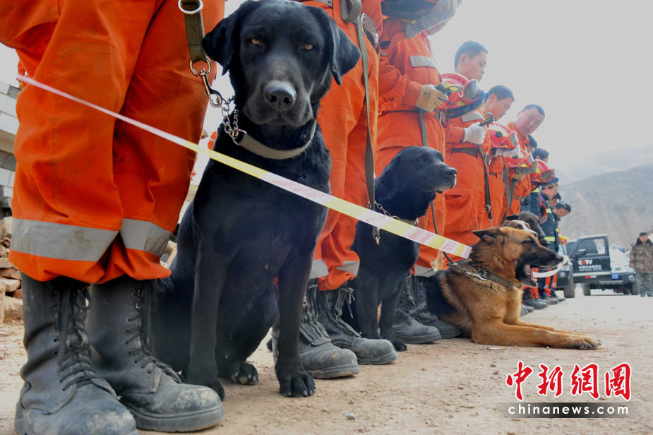 4月21日10時,中國國家救援隊在青海玉樹地震災區(qū)搜尋廢墟上默哀,深切哀悼地震遇難同胞。中新社發(fā) 賈國榮 攝