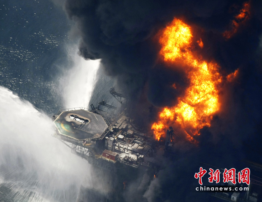 4月21日,美國(guó)路易斯安那州一處海上鉆井平臺(tái)發(fā)生爆炸,造成至少11人失蹤、7人重傷。這起爆炸發(fā)生在20深夜,但直到21日中午,爆炸引起的大火仍在熊熊燃燒。目前鉆井平臺(tái)已嚴(yán)重傾斜超過70度,隨時(shí)可能傾覆入海。