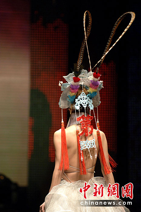 4月20日晚,首屆海西國際時裝周在福建石獅閉幕,本屆時裝周吸引了來自海峽兩岸的紡織服裝界企業(yè)家和知名服裝設計師。期間舉辦了12場時裝品牌和設計師作品動態(tài)發(fā)布會。圖為模特展示古今潮流結合的服裝。王東明 攝