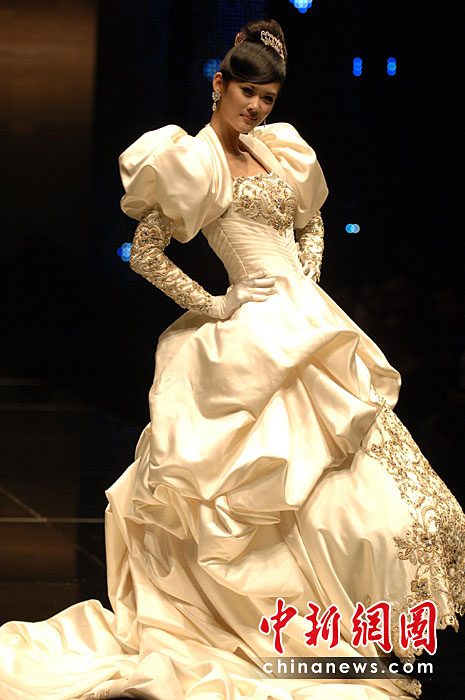 4月20日晚,臺灣著名設(shè)計師蔡美月最新婚紗秀在福建石獅上演。當(dāng)日,首屆海西國際時裝周在福建石獅閉幕,本屆時裝周吸引了來自海峽兩岸的紡織服裝界企業(yè)家和知名服裝設(shè)計師。期間舉辦了12場時裝品牌和設(shè)計師作品動態(tài)發(fā)布會,品牌服裝、童裝、面料、輔料、流行色的流行趨勢專場發(fā)布會。王東明 攝