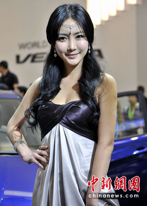 “第十一屆北京國際車展”是名車新品搶先亮相的舞臺(tái),也成了車模們爭奇斗艷的場所,參觀者在車展中可以享受兩道視覺大餐。中新網(wǎng)記者 金碩 攝