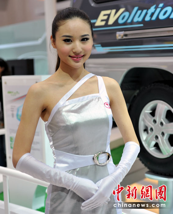 “第十一屆北京國(guó)際車展”是名車新品搶先亮相的舞臺(tái),也成了車模們爭(zhēng)奇斗艷的場(chǎng)所,參觀者在車展中可以享受兩道視覺(jué)大餐。中新網(wǎng)記者 金碩 攝