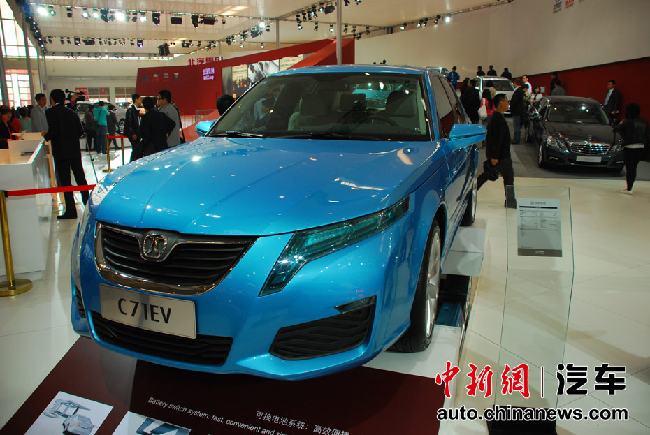 第十一屆北京國(guó)際車展23日開幕,在本屆以“暢想綠色未來”為主題的車展上,新能源車成為最大亮點(diǎn)。圖為北汽C71EV電動(dòng)車 王槊 攝