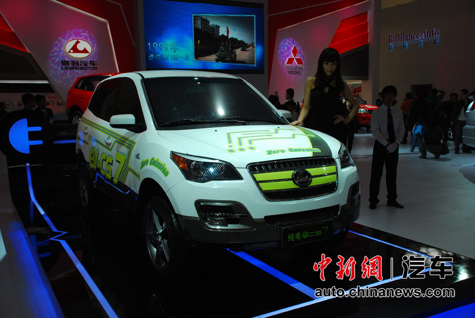 第十一屆北京國(guó)際車展23日開幕,在本屆以“暢想綠色未來”為主題的車展上,新能源車成為最大亮點(diǎn)。圖為長(zhǎng)豐獵豹CS7電動(dòng)車 王槊 攝