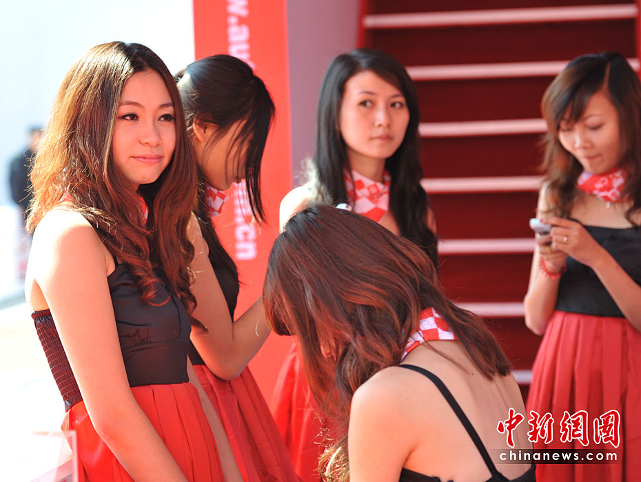 “第十一屆北京國際車展”場內(nèi)車模爭奇斗艷,另類模特也值得人們關注。中新網(wǎng)記者 金碩 攝