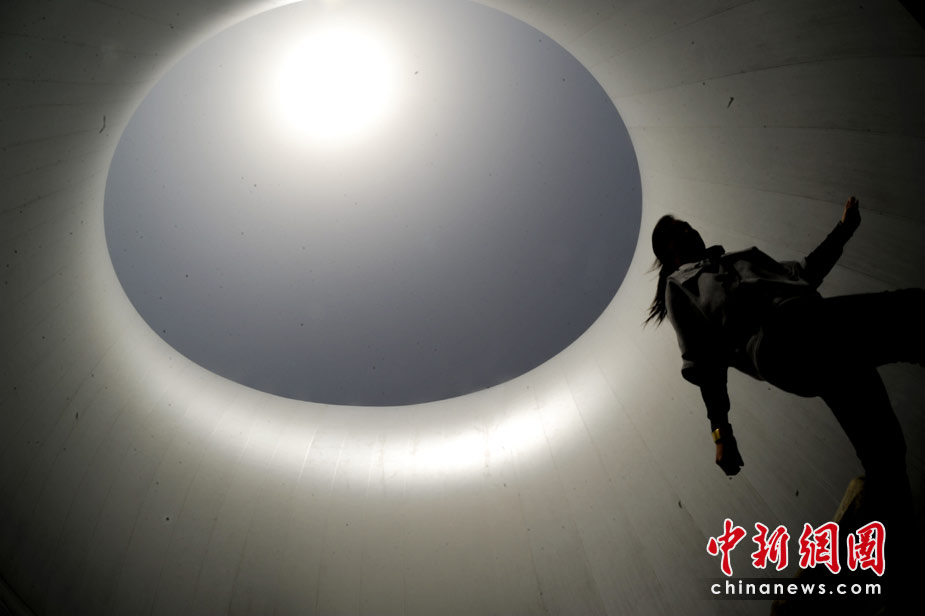 4月27日,一位女士走過(guò)上海世博園芬蘭館的圓形天井。中新社發(fā) 廖攀 攝