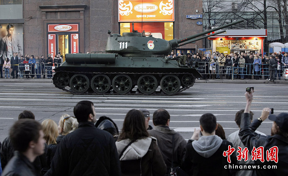 此次紅場閱兵包括兩部分內(nèi)容:歷史部分和現(xiàn)代部分。歷史部分由身穿衛(wèi)國戰(zhàn)爭時期軍服的士兵在鵝卵石道上進行,同時還會有9輛T-34坦克和8輛SU-100自行火炮。現(xiàn)代部分由13輛老虎裝甲車、BTR-80裝甲車、BMP-3步兵戰(zhàn)車、T-90A坦克和S-400防空系統(tǒng)等。圖片來源:中國新聞網(wǎng)