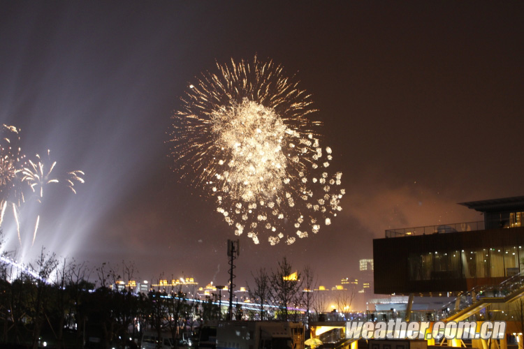 2010年4月27日,上海世博會(huì)開(kāi)幕式彩排順利進(jìn)行。圖為美麗的煙花。卞赟 攝