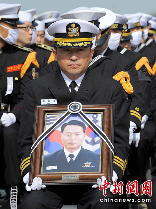 4月29日上午,韓國(guó)“天安”艦遇難官兵遺體告別儀式在平澤海軍第二艦隊(duì)司令部安保公園舉行。韓國(guó)總統(tǒng)李明博攜夫人參加告別儀式。圖片來(lái)源:中國(guó)新聞網(wǎng)