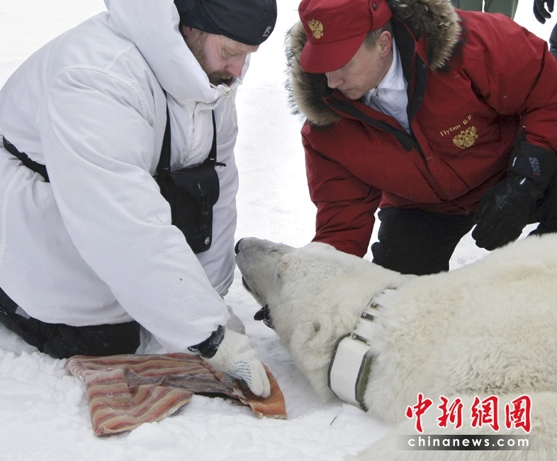 4月29日,俄羅斯總理普京參觀亞歷山大地島(法蘭士約瑟夫地群島)。 普京還與在研究學(xué)者一同給通過(guò)專(zhuān)門(mén)的陷阱捕獲的北極熊戴上衛(wèi)星定位項(xiàng)圈。此外,學(xué)者們還與普京一起給北極熊進(jìn)行測(cè)量和秤體重,