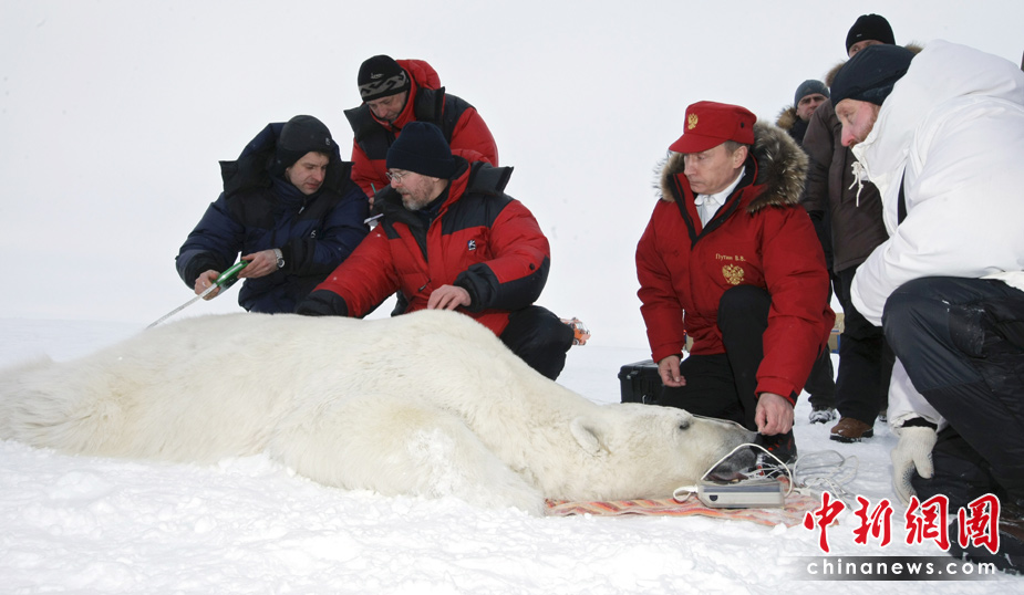 4月29日,俄羅斯總理普京參觀亞歷山大地島(法蘭士約瑟夫地群島)。 普京還與在研究學(xué)者一同給通過(guò)專(zhuān)門(mén)的陷阱捕獲的北極熊戴上衛(wèi)星定位項(xiàng)圈。此外,學(xué)者們還與普京一起給北極熊進(jìn)行測(cè)量和秤體重,