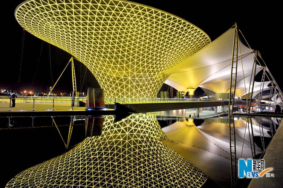靜待開(kāi)幕的世博園沉浸在一片暮色中,流光溢彩,給人無(wú)限遐想。從外灘到世博園,“夜”上海不斷延伸,讓人激情跳躍。圖片來(lái)源:新華網(wǎng)孫巍攝
