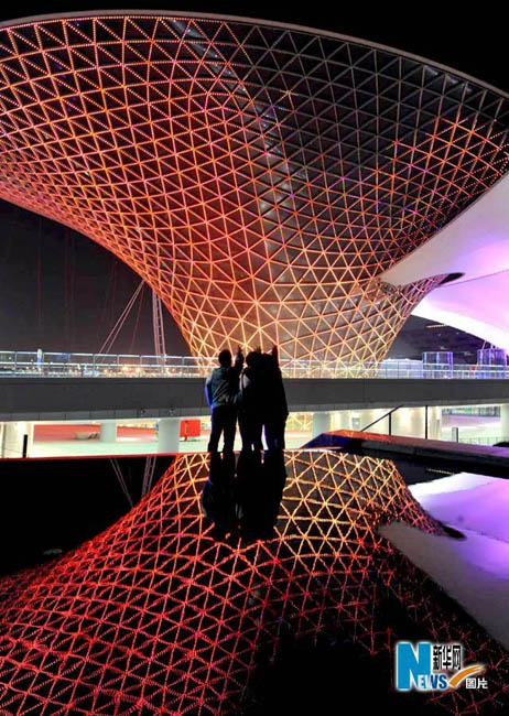 靜待開(kāi)幕的世博園沉浸在一片暮色中,流光溢彩,給人無(wú)限遐想。從外灘到世博園,“夜”上海不斷延伸,讓人激情跳躍。圖片來(lái)源:新華網(wǎng)孫巍攝
