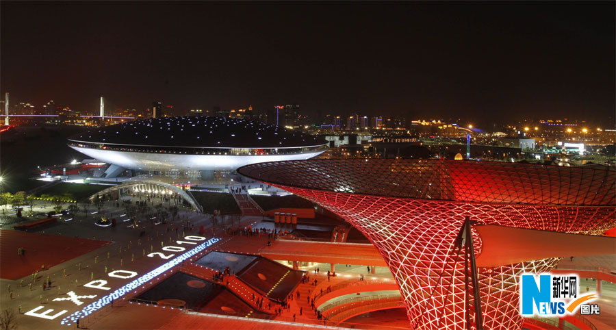4月30日,中國(guó)2010年上海世博會(huì)開(kāi)幕。世博軸和世博文化中心亮燈。裴鑫攝