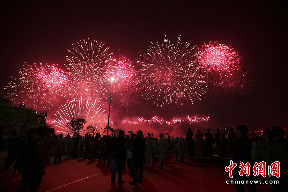 4月30日晚21時(shí)28分,在世博會焰火燈光表演開始。萬千煙花爭奇斗妍,黃浦江兩岸綿延3.28公里同時(shí)奏響火樹銀花不夜天的華彩世博樂章。圖片來源:中國新聞網(wǎng)