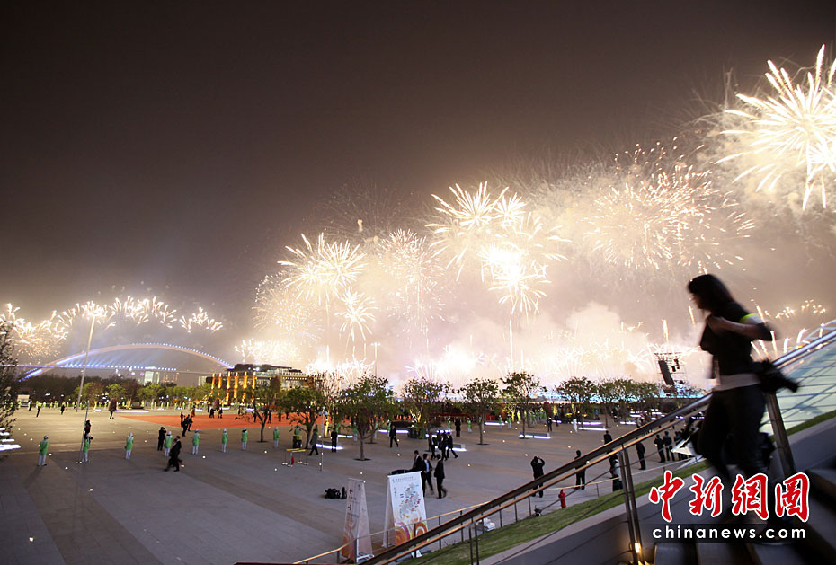 4月30日晚,2010年上海世博會(huì)開幕式在上海世博園世博文化中心舉行。21時(shí)28分,世博會(huì)焰火燈光表演開始。黃浦江兩岸綿延3.28公里同時(shí)奏響火樹銀花不夜天的華彩世博樂章。圖片來源:中國(guó)新聞網(wǎng)
