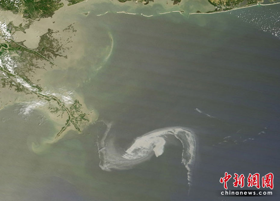 4月30日,在美國路易斯安那州海岸,為阻隔原油擴(kuò)散而設(shè)的護(hù)欄帶被海風(fēng)浪沖到岸邊。當(dāng)天,美國總統(tǒng)奧巴馬下令調(diào)查墨西哥灣石油鉆井平臺(tái)爆炸事件,以避免將來類似事件再次發(fā)生。平臺(tái)爆炸沉沒后泄漏的原油當(dāng)天已漂至美國沿岸。圖片來源:中國新聞網(wǎng)