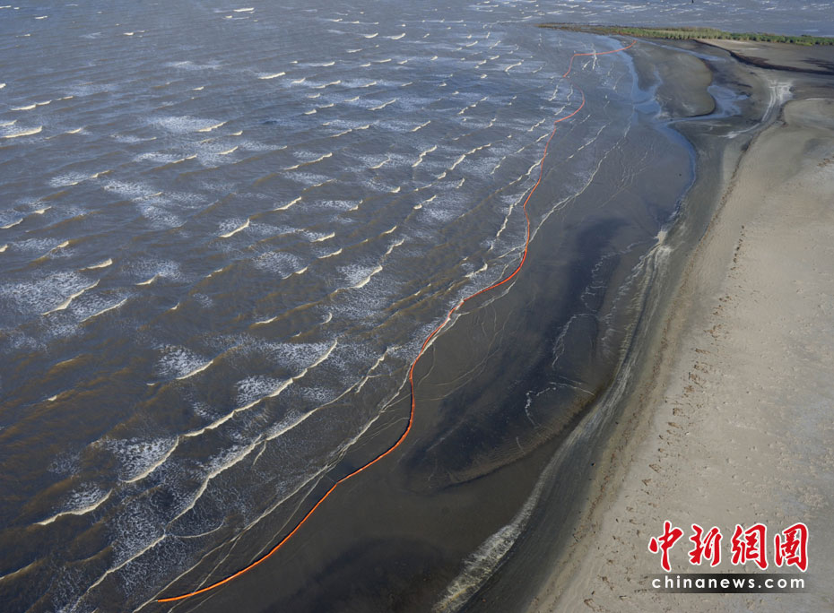 4月30日,在美國路易斯安那州海岸,為阻隔原油擴(kuò)散而設(shè)的護(hù)欄帶被海風(fēng)浪沖到岸邊。當(dāng)天,美國總統(tǒng)奧巴馬下令調(diào)查墨西哥灣石油鉆井平臺爆炸事件,以避免將來類似事件再次發(fā)生。平臺爆炸沉沒后泄漏的原油當(dāng)天已漂至美國沿岸。圖片來源:中國新聞網(wǎng)