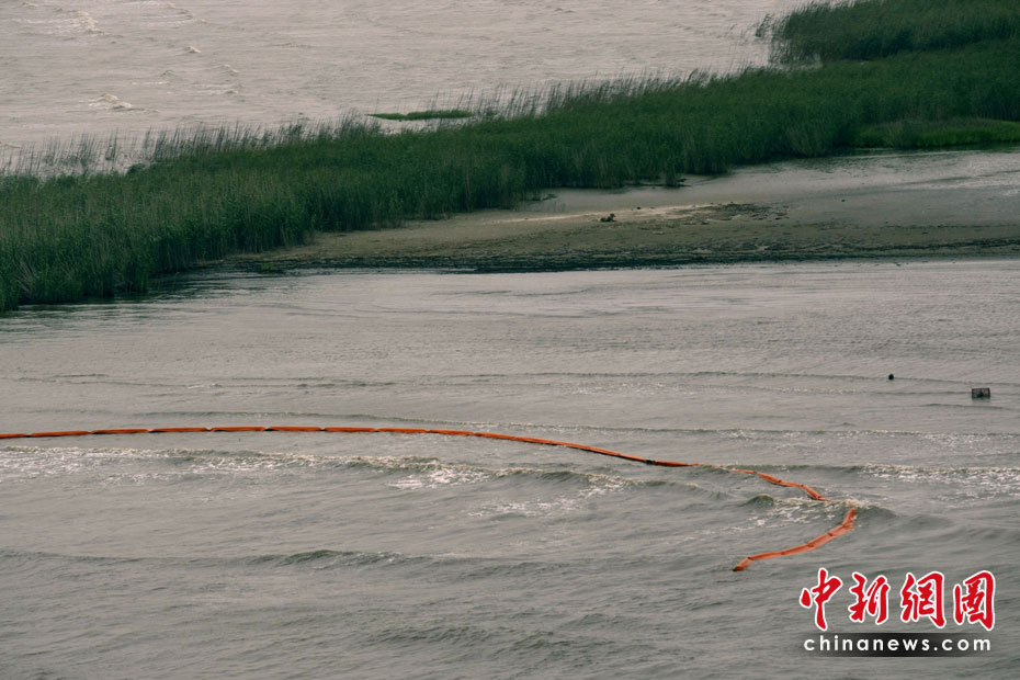 4月30日,在美國(guó)路易斯安那州海岸,為阻隔原油擴(kuò)散而設(shè)的護(hù)欄帶被海風(fēng)浪沖到岸邊。當(dāng)天,美國(guó)總統(tǒng)奧巴馬下令調(diào)查墨西哥灣石油鉆井平臺(tái)爆炸事件,以避免將來(lái)類似事件再次發(fā)生。平臺(tái)爆炸沉沒(méi)后泄漏的原油當(dāng)天已漂至美國(guó)沿岸。圖片來(lái)源:中國(guó)新聞網(wǎng)