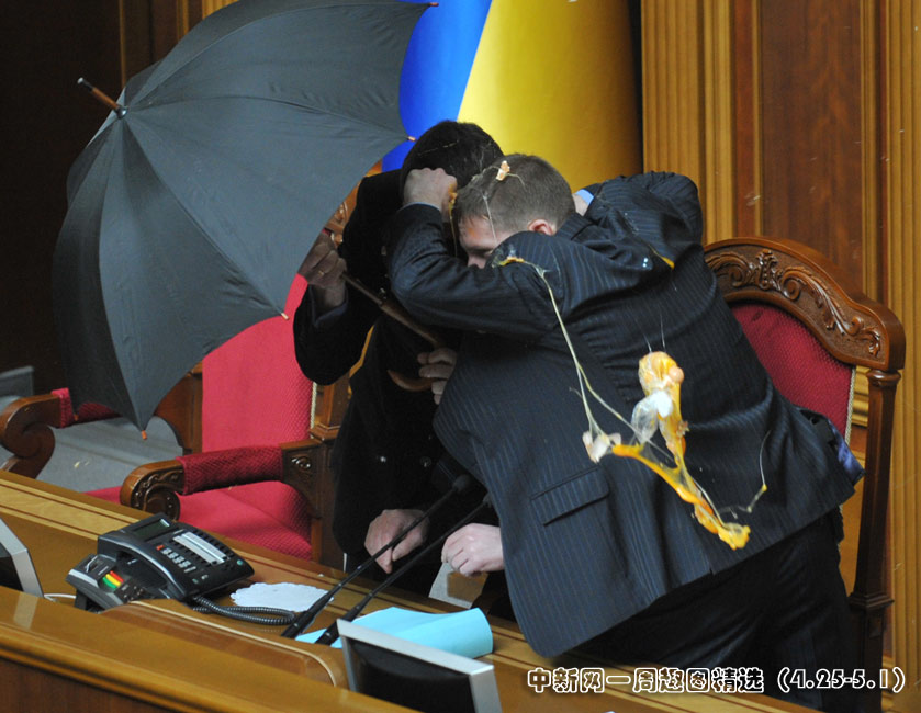 4月27日,基輔,烏克蘭議會(huì)就俄羅斯黑海艦隊(duì)駐扎問題進(jìn)行討論時(shí)出現(xiàn)混亂,數(shù)千人在議會(huì)外示威,會(huì)場(chǎng)內(nèi)有人投擲煙霧彈和雞蛋,大廳內(nèi)煙霧彌漫,場(chǎng)面一度混亂。圖片來源:中國新聞網(wǎng)>>點(diǎn)擊觀看詳細(xì)內(nèi)容