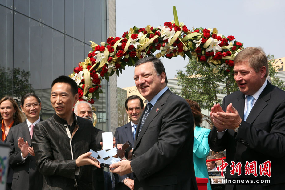 5月1日,歐洲委員會(huì)主席巴羅佐(中)在上海世博園區(qū)出席歐盟館開館儀式。當(dāng)日,上海世博會(huì)正式開園。中新社發(fā) 湯彥俊 攝