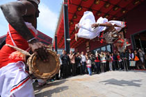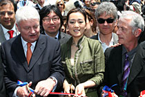 5月1日,上海世博會正式開園,在法國館內(nèi),美麗的法國少女熱情地接待著每一位進館參觀的游客。圖為法國美女與中國小伙“親密接觸”,盡顯法蘭西浪漫風(fēng)情。中新社發(fā) 湯彥俊 攝