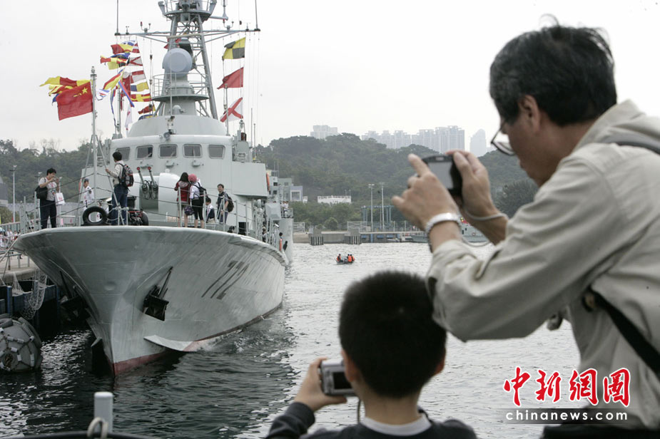為慶!拔逡弧眹H勞動節(jié),進一步增進與香港社會各界相互溝通與交流,中國人民解放軍駐香港部隊5月1日在昂船洲軍營舉辦開放日活動,開放兩艘導(dǎo)護艇和兩艘登陸艇供市民自由參觀。中新社發(fā) 張勤 攝