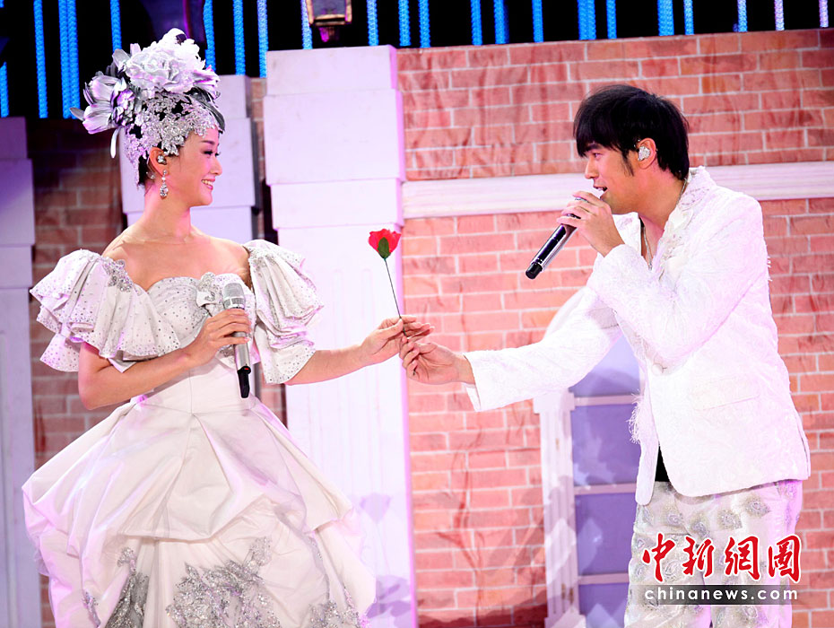 圖為宋祖英、周杰倫同臺(tái)演唱。王保勝 攝