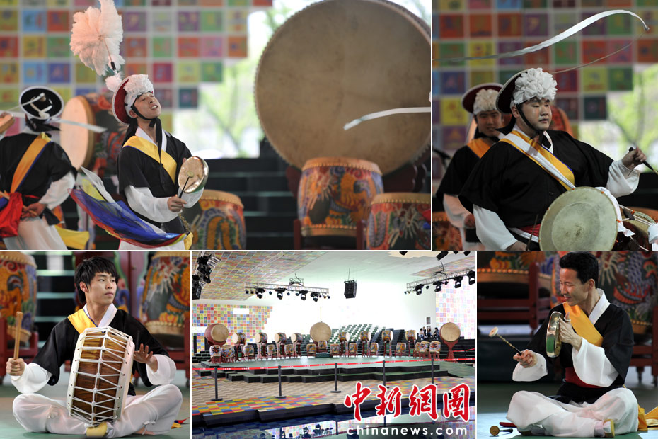 在場館一層還有一個(gè)演藝平臺,有韓國特色的打擊樂演出。中新網(wǎng)記者 王紅綱 攝